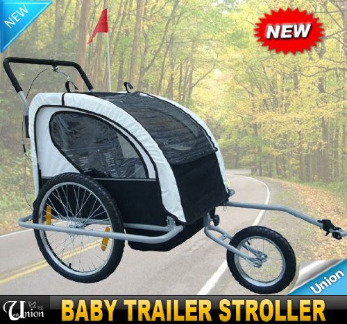 New 2IN1 Double Child Baby Bike Trailer Kids Bicycle Stroller Black With Hand Brake Review